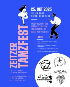 Am 25. Oktober findet das große Zeitzer Tanzfest im Hyzet Alt-Tröglitz (Hauptstraße 26, Alt-Tröglitz) statt und der Tanzclub ist natürlich mit dabei!
